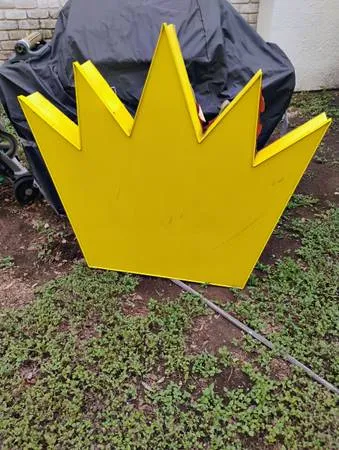 Selling a Crown that can be hooked up to electricity to light up. Has a couple of dents but overall in good condition. 45 inches wide 42 inches tall 5.5 inches deep. MPU Call/text 210-535-8416