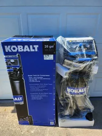Brand new, never used, Kobalt QUIET TECH 26-Gallon Portable Air Compressor. Vertical air compressor, quiet, 150 max psi, oil-free motor. $300 Call or Text Anthony 856-364-1127