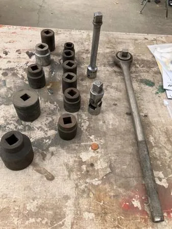 3/4 drive 24 ratchet with 11 sockets, 8 extension and a swivel. email Craig or call 916-550-8150 and leave a message.
