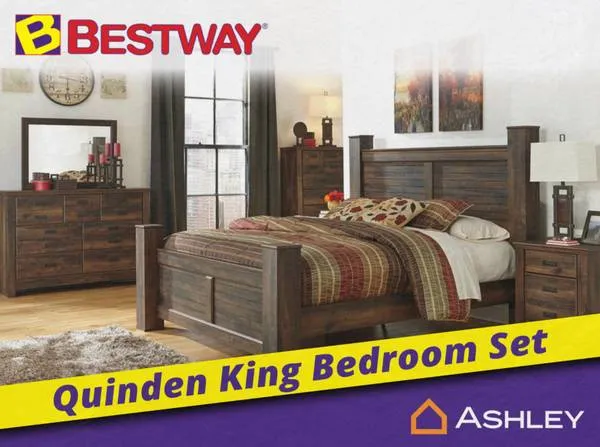 Pay over time with Bestway 469-908-2810 Just 32 a week for the full bedroom set with nightstand, dresser, bed frame and headboard. Stylish, large and quality furniture for your bedroom from Ashley! Rustic details throughout this Quinden-Dark Brown bedroom collection introduce a unique vintage casual style for your master bedroom