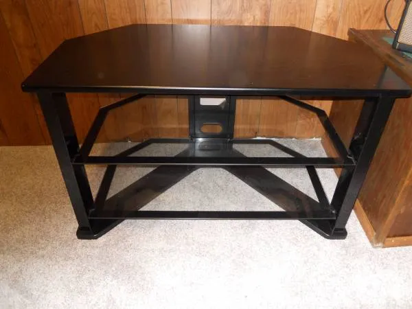 Calls only 689-6259 Like new Tinted glass shelves. Will also work as a corner stand. 40w x 23 h x 19d