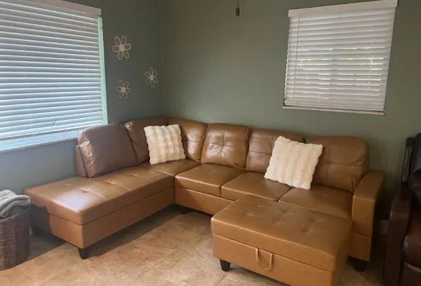 Sectional couch with storage ottoman and decorative pillows ! Brand new still in packaging this is display picture Delivery to all areas 425-305-6612