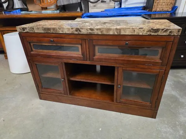 Selling a nice modern cherry and granite top TV stand in excellent overall condition. Measures 54 inches wide, 36 tall and 17 deep. Please call or text me at 631-796-2729 if youre interested. Thank you.