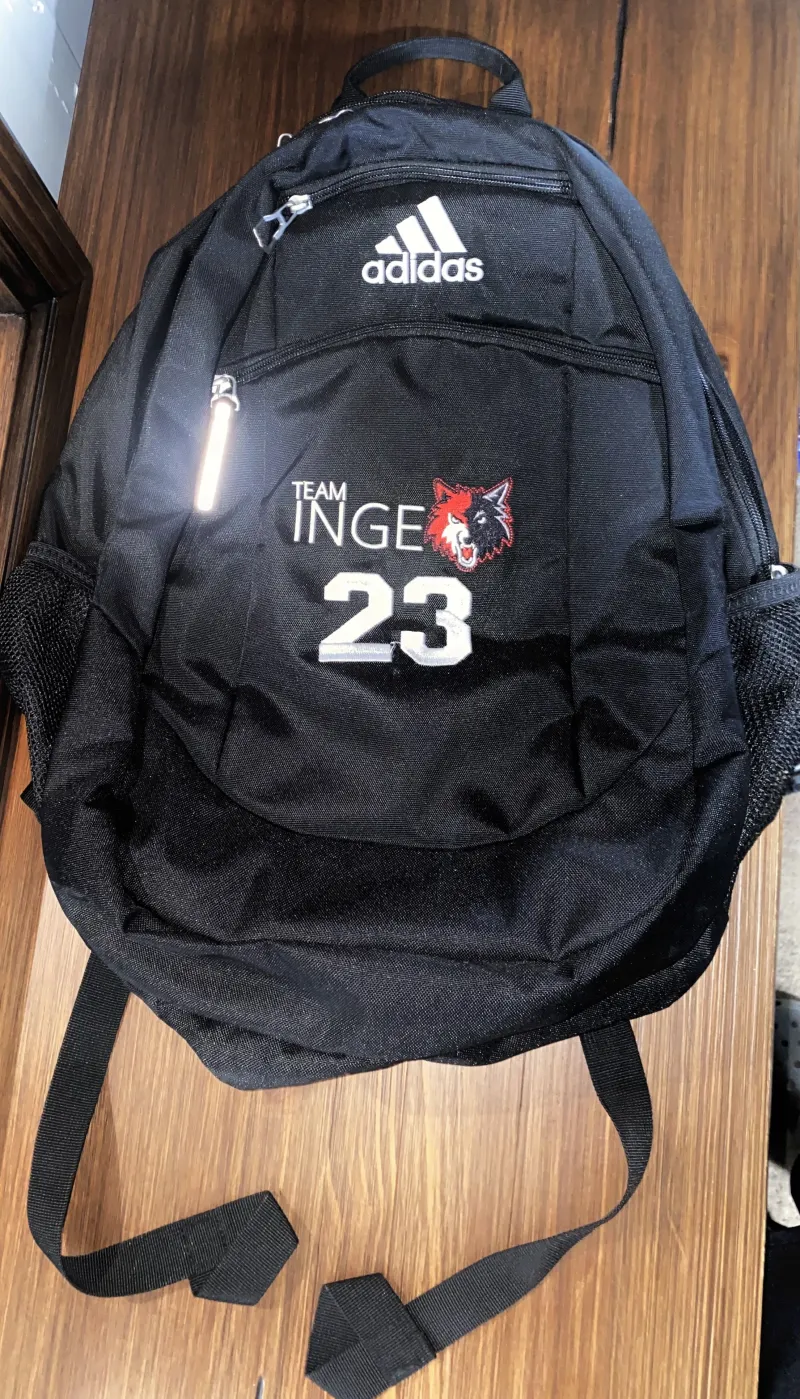 Why spend $50+ on a basic bag? Snag this Adidas premium sports backpack today! Embroidered with Team Inge #23 unique, durable, and roomy for gym or class. Priced to go, grab it before it’s gone!
