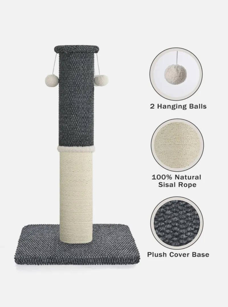 Protect your couch and spoil your cat with this brand new cat scratching tree by Made4Pets, never used, comes with toys and all hardware! Dark grey neutral color blends with any decor. Keeps your cat entertained and your furniture scratch-free. Limited stock, available today for local pickup or shipping!