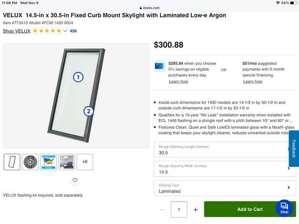 New in box Velux fixed skylights. $200 each. 4 available. New in box Velux Skylight flashing kit. $100 each. 3 available. Any questions just call. 812-369-3334 No emails, I will have to talk to you on the phone so that I know you’re not a scammer. Thanks for looking.