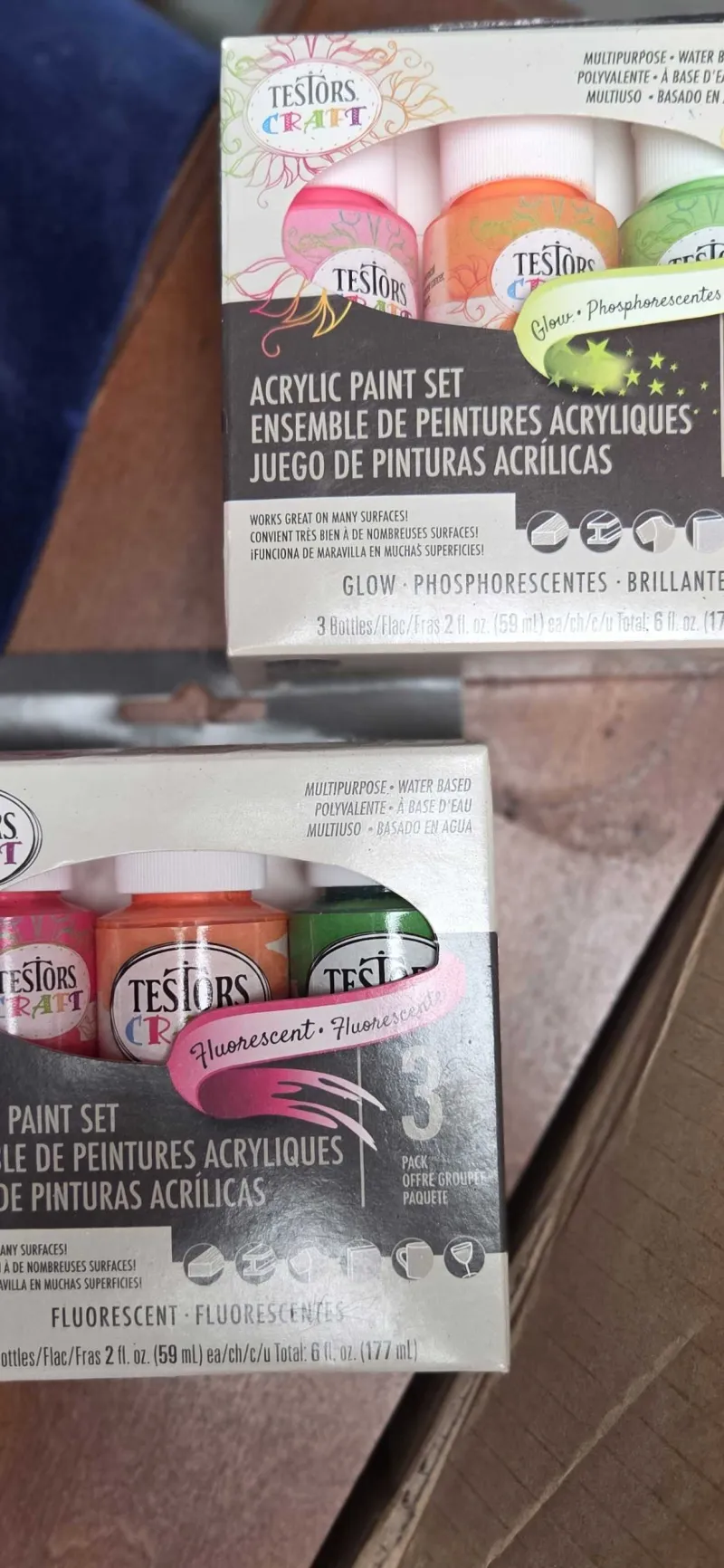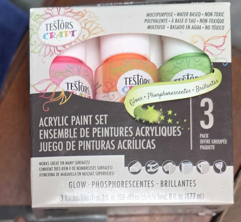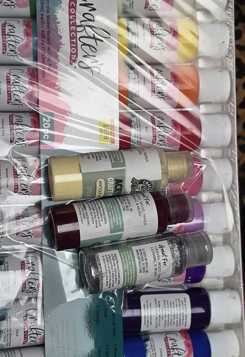 crafting paint. band new used a pickle size amount of each only two black and dark purple.