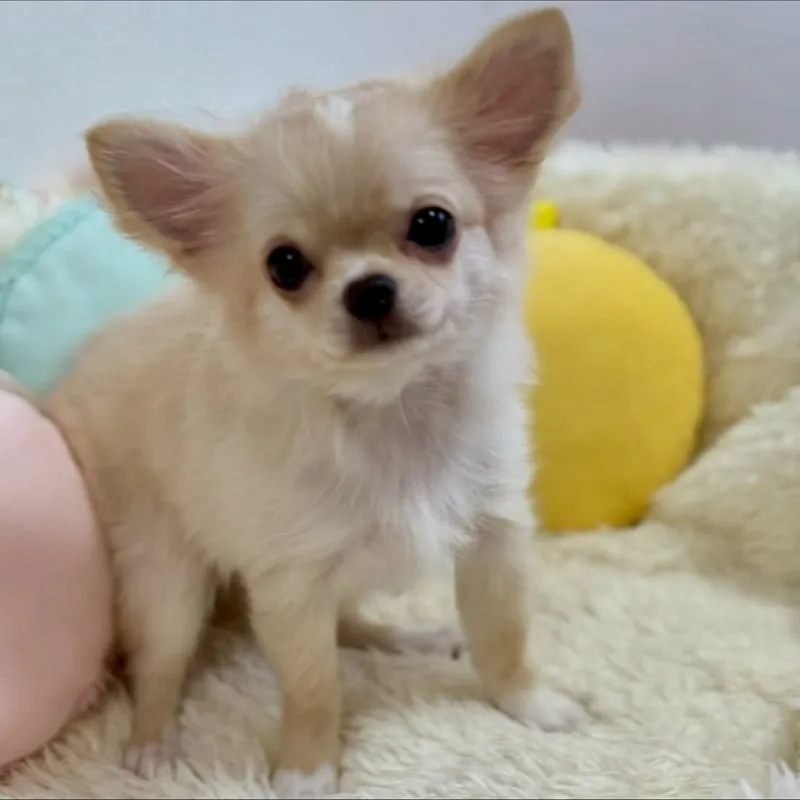 This Chihuahua puppy is loving, gentle and very playful. Has a calm nature enjoys being held, and loves human attention. Confident, curious, and gets along well with children and small pets. A perfect mix of sweet smart and social.