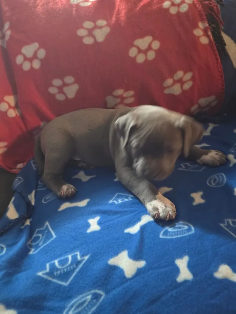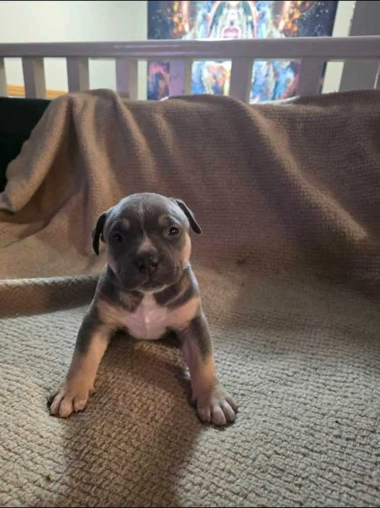 7 week old American Bully Pups. 4 males and 2 females available. Abkc registered. All pups come with 30days pet insurance and a bag of food as well as health check from vet first shot, deworming and papers....contact for price and more information