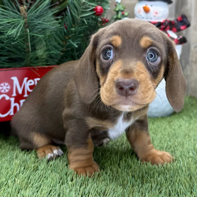 Hi, I'm Glitter! Hi, I'm Glitter! I'm a 6-week-old female Dachshund with a beautiful chocolate & tan coat, born on October 24, which makes me a Scorpio sign. I'll be ready to go home to my forever family after December 19, once I'm grown enough to leave my litter. I'm AKC registered. With me you'll have the time of your life and feel a love like never before.