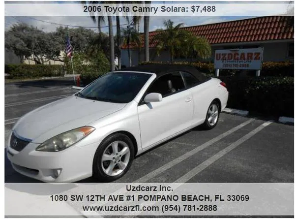 You can find these great cars with less miles for thousands more but WHY pay more ? This very sharp Solara convertible is ready to jump in and drop the top ! to enjoy the ride . Buy from a small licensed dealer who takes pride in what they offer! We sell vehicles that are tried and proven to be some of the best built transportation you can buy! You can buy newer, more mileage, more features w Tech but you can’t buy the cars that cost less in repairs, any so called mechanic can work on, and are PREDICTABLE on repairs needed ,easy to diagnosis ! For your convenience, Please call ahead and also Please use Google maps: Uzdcarz Inc for location. Tired of all the scams? Tired of looking @ JUNK? Tired of calling on a fictitious ad that never was for sale? Stop wasting your time!!! Save Thousands! Call 954-781-2888 ...We sell cars … NOT financing, if you are seeking to get put to sleep by financing a car then call some 1 else. Nos disculpamos ,pero no hablamos espanol .ASK ABOUT our 90 days same as cash ! We have this car, @ this price and in this condition as you see it! We are Not your typical car dealer and we may not always have what you want but we ALWAYS have what you need …Good, clean, reliable transportation for less ! No games or hassles just quality and value! No salesmen = volume pricing =better value and quality to you !!! No fancy showrooms, no expensive websites, not a bunch of salespeople hounding you and No managers bugging you for your phone number. Deal directly with the owner who makes the deal come true ! Free Carfax’s available on all cars, Trades welcomed, and most major credit cards accepted. Flexible sales hours if you have 1 of those “Tough schedules” , and we don’t ask for your phone number unless we sell you a car !!! We apologize to other dealers for our up-front H 1 sty and lower pricing! The prices listed are for cash or financeSAME LOW PRICEbut we only offer 90 day 0 interest loans and other short term option loans available . We work hard for your business and sell quality cars /trucks and SUV’s for less. All of our vehicles are inside stored for your viewing ease. Visit UzdcarzFl.com or Uzdcarz.com for all of our inventory. Where over 37 of our business is repeat or referral every month for a reason…. Reputation, integrity, value, quality, and …. no hassles…. Want reliable, reasonably priced transportation and don’t want to get married to a car loan? Let us help you!