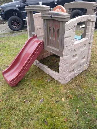 Selling a good conditionstep 2 brandwoodland climber kids jungle gym style play station.has rock climbing steps on both sides and steps and slide.measures approximately 4 ftx 5 ft and 5 ft tall. Has so.e areas wheres kids scribbled on it with markers so could possibly be cleaned if its a concern. No damage other than that.recomended for ages 2-6. 50.00. Call 206-276-7028 thx