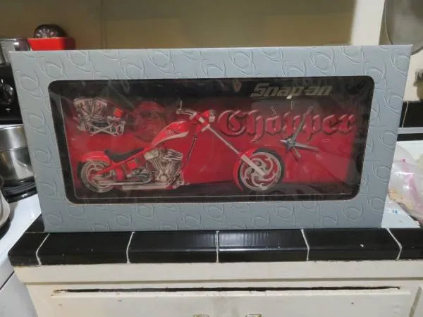 I have the Orange County Chopper - Jebco Clocks Snap-on Chopper Clock S 10 - 23 W x 11 H. It is New in Original box and Never Been Used or Displayed. It has been stored inside a closet all these years. MADE IN USA & IT IS MADE OF WOOD HEAVY and GREAT WALL CLOCK. These were sold by Snap-On dealers only during those great shows we all watched on TV. Please call me if interested 650-766-1747, I will not response to emails and texts - they are usually spammers.