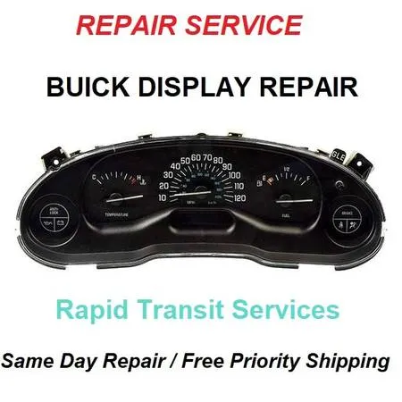This is a repair service to your instrument gauge clusters LCD ODOMETER display so that its functional and bright for the following vehicles: 1997-2005 Buick Century 1997-2004 Buick Regal Call or text us at 512-217-3609 for more information or go to www.rapidtransitservices.com. 5122173609