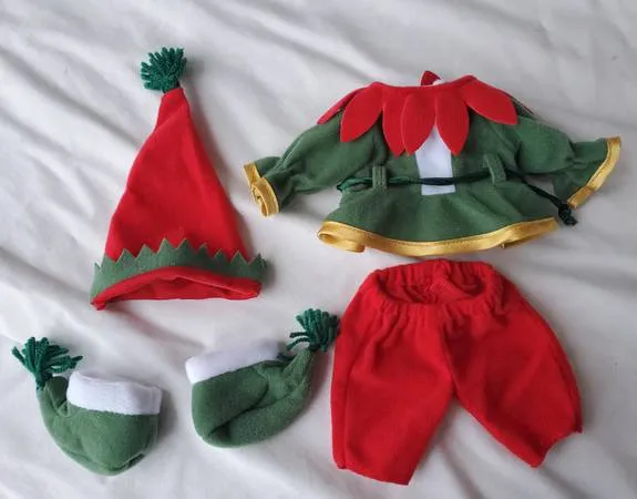 TY Gear ELF Outfit for Beanie Babies Kids Doll Clothes Includes: Shirt Pants Hat Pair of Elf Shoes This also fits beanie baby bears Do you remember TY Beanie Babies? These we also made by TY, called Beanie Kids They came with a removable outfit called TY Gear Fits the 10 inches tall doll Collectible children’s toy Stored for decades in an airtight container for decades Nonsmoking no pet household $7