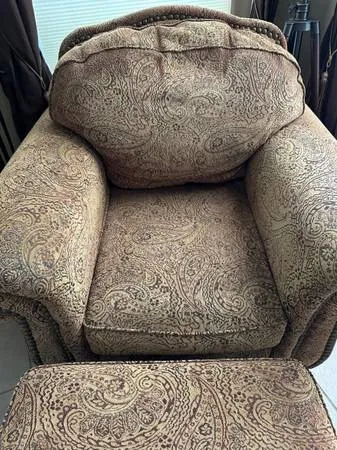 Yes! We still have the chair and foot rest. I will delete it within 2 hours of the sale. Other questions? This gorgeous studded Paisley fabric chair with ottoman. If you only want 1, the chair is $150 or $100 for the ottoman. No cashiers cheques or shipping agents. PayPal , Venmo or cash is acceptable. Delivery is available to your curb for $35/hour round trip. It is due and payable even if you change your mind, so please plan to come see it before you ask my friend to deliver it. NOTE: Listing will be deleted once item is sold. Most inquiries as to whether it is still available turn out to be spammers so Im now ignoring those. Pretend you asked if its available, I said, yes and then ask your question. Dont ask me to write you at a personal email address. The craigslist method works just fine.