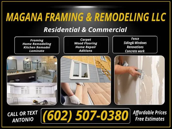 ✅ Magana Framing & Remodeling LLC ✅ Call or TextAntonio 602-507-0380 ✅ Free Estimates - Affordable Prices ✅ 17 years Experience - Family Owned 🔴 SOME OF OUR SERVICES: 🔴 HOME REMODLEING 🔴 KITCHEN REMODEL 🔴 FLOORING 🔴 LAMINTATE 🔴 CARPET 🔴 HARDWOOD 🔴 WOOD FLOORING 🔴 ADDITIONS 🔴 FRAMING 🔴 CONCRETE 🔴 HOME REPAIR 🔴 FENCE 🔴 SIDING 🔴 WINDOWS 🔴 RENOVATIONS 🔴 AND MUCH MORE Magna Framing & Remodeling LLC License info: ROC 340269 www.magna-framing-and-remodeling-llc.ueniweb.com Call or TextAntonio 602-507-0380 Call or TextAntonio 602-507-0380 Call or TextAntonio 602-507-0380 Call or TextAntonio 602-507-0380 _________________________________________________________________ _________________________________________________________________________________________________ _________________________________________________________________________________________________ _________________________________________________________________________________________________ _________________________________________________________________________________________________ _________________________________________________________________________________________________ _________________________________________________________________________________________________ _________________________________________________________________________________________________ _________________________________________________________________________________________________ _________________________________________________________________________________________________ _________________________________________________________________________________________________ _________________________________________________________________________________________________ _________________________________________________________________________________________________ _________________________________________________________________________________________________ _________________________________________________________________________________________________ _________________________________________________________________________________________________ _________________________________________________________________________________________________ _________________________________________________________________________________________________ _________________________________________________________________________________________________ _________________________________________________________________________________________________ _________________________________________________________________________________________________ _________________________________________________________________________________________________ _________________________________________________________________________________________________ _________________________________________________________________________________________________ Houston Sugar Land Spring Katy Kingwood Stafford Conroe Texas City Cypress The Woodlands Webster League City Bellaire Missouri City Friendswood Humble Richmond Pasadena Baytown Tomball Galveston Angleton Pearland Seabrook Lake Jackson Channelview New Caney Manvel South Houston Magnolia Kemah Rosenberg Alvin Hempstead Dickinson Fulshear New Ulm Wallisville Hunters Creek Village Brookshire Sweeny Hardin Hankamer Danbury Needville Simonton Gilchrist High Island Raywood Piney Point Village Orchard North Houston Anahuac Romayor Huffman Cat Spring Bellville Dobbin Damon Highlands Bacliff San Felipe Winnie Kendleton Guy Galena Park Danciger Pinehurst Liberty Stowell Daisetta Industry Mont Belvieu Bleiblerville Old Ocean Clear Lake Shores Santa Fe Bunker Hill Village Porter Liverpool La Porte Brazoria Prairie View Willis Cleveland Clute Port Bolivar Rosharon Dayton Crosby Montgomery Deer Park Freeport Sealy Fresno Alief Hitchcock West Columbia La Marque Beasley Wallis Splendora Devers Hull Hufsmith Pattison Thompsons Oak Ridge North Rye West University Place Kenney Hockley Barker Waller Services: Painting House Painter Exterior Painting Interior Painting Drywall Installation Drywall Repair Carpentry Decks Door Installation Door Repair Fence Fixing Fencing Fences Fence repair Gutter Cleaning Gutter Repair Handy man Siding Vinyl Siding Window Repair Window Replacement Window Installation Windows Room Additions Home Repairs Remodeling Painters Window & Repair House painting House painters Home painting Painting contractors Interior painter Exterior painter Bathroom remodeling Kitchen remodeling Kitchen Remodeler Sun Rooms Renovations Carpenter Wood working Cabinet Painting Shingles Interior House Painters Interior Wall Painting Exterior House Painters Professional Painters Home Painting Services Home Painters House Painting Services Residential Painters Professional Painter Interior Home Painting Residential Painting Contractors House Painting Companies Exterior Painting Service Exterior Painting Companies Outside House Painters Outside House Painting Painting - Faux Finishes Paint Removal Paint Stripping Paint Trim Cabinet Painting Contractor Exterior Painting Interior Painting Interior Painters Painting Services Vinyl plank We service Dallas and its surrounding neighborhoods: Dallas, DALLAS, Bent Tree, Bluffview, Casa Linda, CENTRAL DALLAS, Deep Ellum - Expo Park, Design District, Devonshire, Downtown, EAST DALLAS, Eas 2 od, FAR NORTH DALLAS, Forest Hills, Greenway Parks, Highland Park, Hillside, Hollywood H 8 s - Santa Monica, Kies 2 od, Lake Highlands, Lake Park Estates, Lakewood, Lakewood H 8 s, Little Forest Hills, Lochwood, Love Field, Lower Greenville, M Streets - Vickery Place, Medical District, Midway Hollow, Mount Auburn, NORTH DALLAS, North Oak Cliff, Northaven Park, NORTHEAST DALLAS, NORTHWEST DALLAS, Northwood Hills - Valley View, OAK CLIFF, Oak Lawn, Old East Dallas, Old Lake Highlands, PARK CITIES, Pleasant Grove, Preston Highlands, Preston Hollow, Preston Tr
