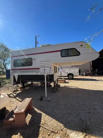 This is a well taken care of truck bed camper. Everything works to my knowledge. Was used on the front of a gooseneck trailer and no longer in need of this camper. 325-227-2586