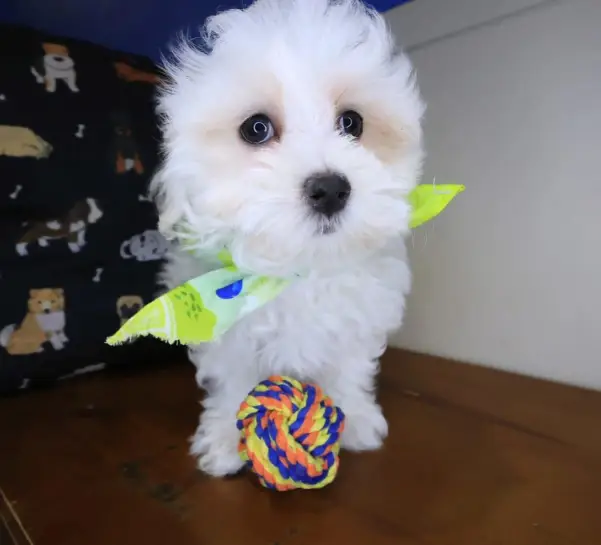 Meet Toastie! A cute Maltipoo puppy who is sweet through and through. I've poured myself into raising this sweet little puppy and are excited to secure Toastie a safe and loving home! Toastie loves to play, snuggle, and be a favorite pal. With proper training, Toastie will make a great family pet or join alongside a caring single. Showing off a stunning white coat, Toastie comes from parents of friendly and confident personalities. When arriving home, Toastie will arrive healthy, socialized, and