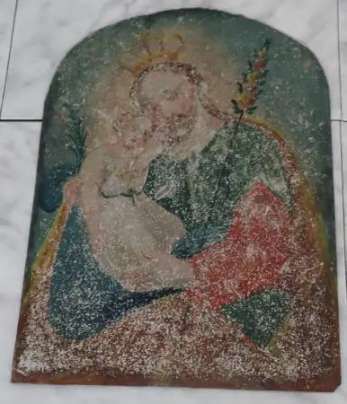Antique Mexican religious retablo Saint Joseph holding Christ child