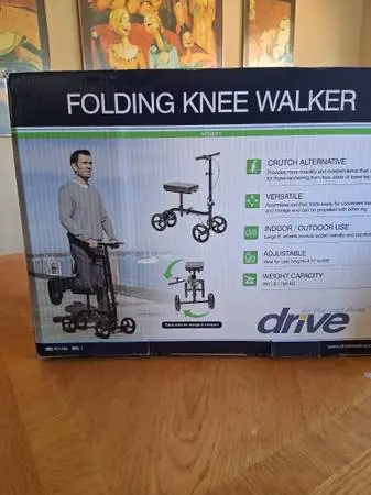 GREATLY REDUCED!! Brand new Drive Medical Knee Walker β a compact, folding mobility device perfect for any 1 recovering from foot, ankle, or lower-leg surgery or injury. A great crutch alternative that provides comfort, convenience, and independence during recovery. β¨ Key Features: Folding design for easy transport and storage Comfortable knee platform reduces strain compared to crutches Adjustable h 8 for a customized fit Smooth-rolling wheels for indoor and outdoor use Compact and sturdy design by trusted Drive Medical brand π² Price: $70 Save $75 vs. retail! β Condition: Brand new, never used This knee walker scooter is ideal for post-surgery recovery, general mobility assistance, or as a safe and comfortable alternative to crutches. Perfect for patients who want more freedom and stability during healing. Cedar Park area. See photos. Feel free to text 512-644-0060 for delivery options.