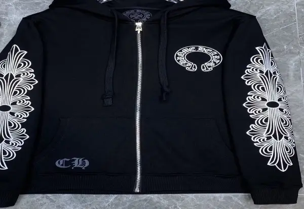 Black Chrome Heart Zip Up Hoodie (M)