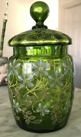 Antique Moser Bohemian vanity dresser hand painted art glass jar
