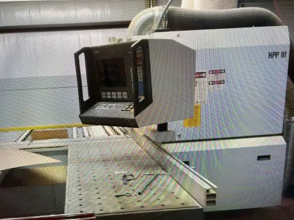 USED HOLZMA MODEL HPP-81, 19963400 MM PANEL SAW WITH 85 MM THICKNESS CAP, 18 HP MAIN MOTOR, 3 HP SCORING MOTO 0-70 MM SAW TRAVEL SPEED 40 MM/MIN. FENCE SPEED 3 AIR TABLE 6 CLAMP, WIRED FOR 240/60/3. call:770-712-9634