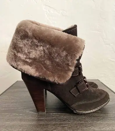 New Sofft Skagen womens 7.5 M brown suede leather with fold over lamb fur cuff Heels are 33/4 H CASH ONLY Text if you are interested: 646-673-1516 I can meet you near Walgreens, located at 3501 Lomas Blvd NE. I will no respond to codes or unusual payment methods. Thank you