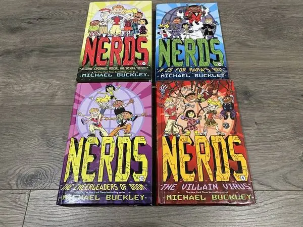 NERDS BY MICHAEL BUCKLEY Books 1, 23 & 4 HARDCOVER & PAPERBACK Comes with the 4 Books Pictured 1 ~ National Espionage, Rescue, and Defense Society 2 ~ M is For Mamas Boy 3 ~ The Cheerleaders of Doom 4 ~ The Villain Virus Excellent Condition Check out all the other books I have for sale Pick up 192 nd & Harrison area Text 402-889-5046