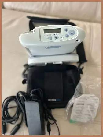 Condition: Pre-owned, certified, tested. Includes concentrator, 8-cell battery, home and car charger, carry case with shoulder strap, and brand-new tubing/cannula. Calls preferred 360-610-4076