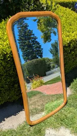 simple, yet elegant , birdseye maple mirror with hand bevelled glass--dated July, 1914--signed by maker--W.M.&G. Cos pennant brand mirrors--glass is in very good condition for its age--the individual hand bevelling cuts are clearly visible--when the sunlight is at just the right angle, refraction from the cut marks cast rainbows in the room--MAGIC! dimensions: h 8--38 width--20 price--$200, cash only, please call Gary415-531-9555 if listing is runn...
