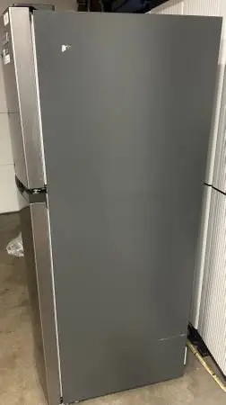 New Frigidaire Top Freezer Refrigerator Stainless Steel H 60 W 27.5 D 26 with some cosmetic dents , check pictures before to call never been used Delivery , install, removed out and haul away the old 1 available for extra FEE depending on distance Hablamos Español También Please call or txt 209-244-3746 Thanks Gracias