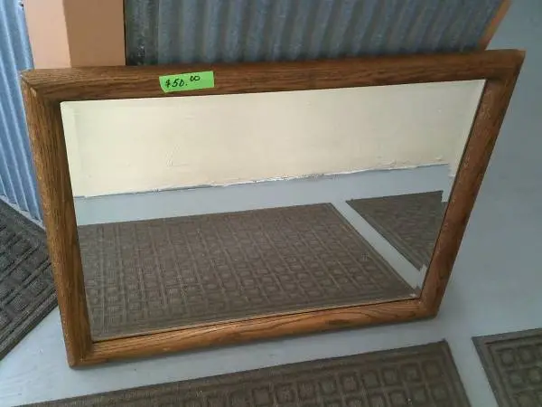 Selling a super nice 1940s Beveled Mirror in original Solid Oak Frame The size is: 32 X 24 ..... It has the mounting tabs on the back for wall hanging Come and get it for $50 Cash ...... Please call by Phone! .... Thank You!
