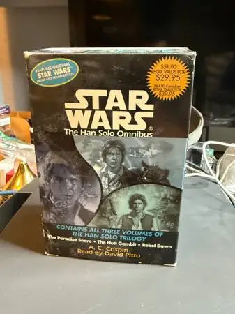 I am selling a vintage 6 cassettes Star Wars: The Han Solo Trilogy Tape Set. This set is in excellent condition, and the box is still in excellent condition. I am asking $15.00. I will not accept trades or will not deliver. If you have any questions, ONLY TEXT ME at 505-575-3335.