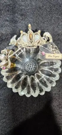Vintage 1960s Las Vegas crystal souvenir ashtray with Silvertone and gemstone accents. Some stones are missing but still a cool collectable. Overall good condition. $10 Located in Rio Rancho near Southern and Unser Please call or text Spencer at 991-1511 Thanks for looking