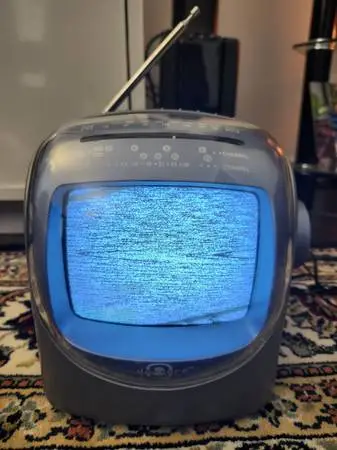 This is like new, perfect condition, never used, portable 5 inch black and white TV. It has zero signs of use. Pristine condition. It also has AM and FM radio. It comes with AC power adapter. It also can be operated with batteries. It has external antenna input which allows for connecting external devices to it. Please text or call. I dont monitor emails. 443 2Eigth0 NineElevenZero