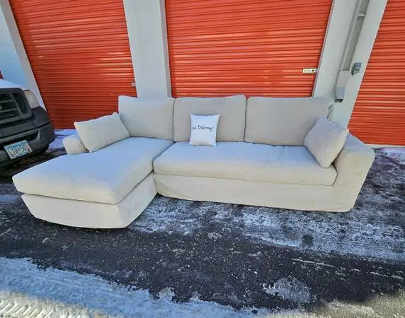 Selling a gently used Pottery Barn Big Surr sectional. Comes apart in 2. Performance fabric in oatmeal cream beige color. Features a removable slipcover design for easy washing. Overall great condition. 2 years old and still has that new couch feel. Smoke and pet free. No rips, tears, odors or broken parts. Normally this setup from Pottery Barn retails for $3000 - $4 k new so its priced to move. Width - 114 Chase depth - 68 Seat depth - 41 H 8 - 32 Free Delivery included in the TC and metro area. May go further for extra gas fee. Can assist with moving into your home. Call or text 712-298-0032 Joewith any questions. FCFS. Cash preferred method of payment. All sales are final.