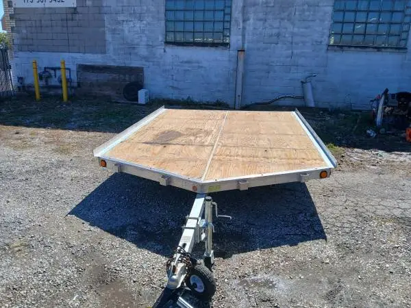 T w o place Triton 101x10 + 2 ft V nose aluminum snowmobile trailer. Wood deck good shape. Two tie down bars, tongue jack, brand new tires with spare, ramp. Great for sleds, atvs, lawn mowers, and golf carts, for more info call 312 f i v e 4 3 t h r e e3 4 5. Calls only all text and emails will be deleted and treated as spam. Sorry too many scammers $1,400 OBO no low ballers please. Cash only.