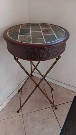 42 inches high. 24 wide. Wood top with tile. Metal legs. Folds up. No emails. Call or text only. 954-839-4854