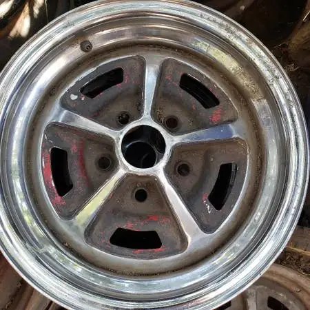 5 Lug Magnum 500 wheels 14 inch, 60s and 70s rims, $50.00 each Set of 4 Magnum 500 Rims. 5 lug. Brand new. 15 X 7s and or 15 X 8s. Or put 15 X 7s in front and 15 X 8s in back. Ford 5 X 4 1/2 lug pattern. 4 1/4 backspacing. Will fit dodge/chrysler/plymouth small pattern also. Have seen same rims at $750 and up... Set of 4... 5 Lug Styled Steel GT wheels 14 inch, 250.00 a set of 4 5 Lug Styled Steel GT wheels 14 inch, full chrome, some rust, 1 only $40.00 5 Early Bullitt Style Aluminum Rims, 14 inch, 60s and 70s rims, $280.00 set of 4 5 lug steel 60s and 70s rims, $40.00 each 5 lug Weld Aluminum wheels, now paited black.used, need repainting 15 X 7 set of 4 $180.00 5 lug steel 60s and 70s rims, with like new tires $180.00 set of 4 Aftermarket 4 lug rims, Chrome, set of , 14 inch $120.0 Factory Mustangs 70s steel rims, for disc and drum brakes $180.00 a set of 4 And More Jim five-six-two-eight-o-seven-four-two-eight-six (this does not get caller ID so leave a phone number, and leave the number clearly twice at the beginning of the message as many times the cell phones reception is not clean for leaving a message) jpwarino at y a hoo dot com visit the following web address for many car albums full of pictures: http://s1117.photobucket.com/albums/k600/megazone1/