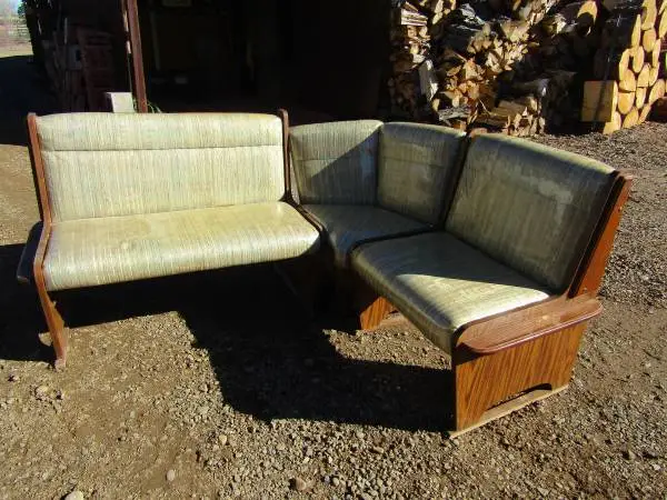 Kitchenette bench with table. Heavy plastic cover on cushions and table for protection but can be removed. Table measures 46 long, 36 wide, and 30 tall. Excellent condition. Located between Dolores and Cortez. Please email or text Alice at 970-560-5794.