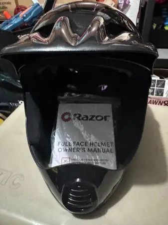 Razor Kids Fullface Helmet for BMX, MTB, scooter ect... gloss black, head size 21.522.5 adjustable strap, sun visor, 17 vent holes, extra-thick comfort padding, only used a couple times, practically brand new, might even still have the box for it - willing to meet if interested, cash only - Email or Call/Text 512-297-3123