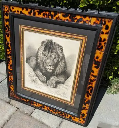 Amazing condition--remarkable craftsmanship--copper etched engraving of lion--framed in authentic tortoise shell frame-- Circa--1800 s Dimensions: h 8--19 width--17 rare and remarkable item price:$200, or reasonable offer considered, cash only, please call gary415-531-9555 Please--no trolls Please note: if ad is running, item is still for sale Thanks for your interest