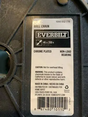 EVERBILT BALL CHAIN CHROME PLATED NON LOAD BEARING 200 ft For Sale $25.00. Text messages only 626-484-6063.