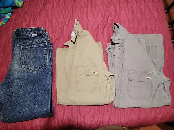 Selling 2 used FR shirts in size Small and 1 FR jean in size 30 x 30. I am asking $20 for each item or or $45 for everything. You can reach me at 956-566-0595.