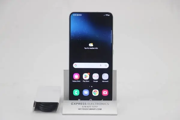 Available in store is a White Samsung Galaxy S 22 that has 128 GB of storage. The device is in EXCELLENT cosmetic condition, having no major signs of screen and back wear. The device has a GUARANTEED clean IMEI and is FACTORY UNLOCKED, which allows it to be activated with ANY worldwide carrier! The Galaxy S 22 comes with an unused cable and is ready to be purchased! ***APPLY FOR OUR NEW 90-DAY SAME AS CASH FINANCING WITH EASYPAY BY SCANNING THE QR CODE IN THE LAST PHOTO*** WE GUARANTEE & OFFER: -CLEAN SN/IMEI/SERIAL NUMBER For Life -30 Day Testing Period -Free CheckMend Report CheckMend searches data from numerous legitimate US sources to provide mobile device history reports, letting you buy with confidence! *******************Call or Text Us: 678-677-1212******************** We ACCEPT: CASH, AMERICAN EXPRESS, VISA, MASTER CARD, and DISCOVER HOURS OF OPERATION Monday-Friday 11-6 pm Saturday Closed Sunday 12-6 pm EXPRESS ELECTRONICS 3145 Buford Hwy Duluth GA 30096 WE ALSO PROVIDE: *Repairs *Ne 2 rk Unlocking *Monthly Prepaid Cellular Service ***You can also find us by searching for Express Electronics in Duluth on Craigslist & Google Maps!***