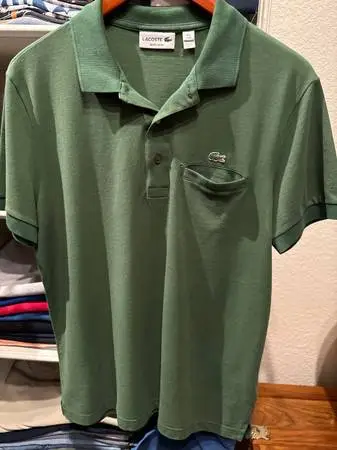 Reduced! Lacoste men’s polo green with pocket. Men’s medium Call or text 972-832-2960 Women, Woman, Ladies, Lady, Girl, Girls OSU cowboys. Boys, boy, men, sweatshirt, jacket, zip, pull, shorts, Nike, denim, western, boots, shirt, hoodie, barn