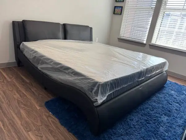 BED FRAME IS NEW IN THE BOX , PLUSH MATTRESS IS INCLUDED. FREE DELIVERYGRATIS DOMICILIO LA BASE ES NUEVA EN CAJA , COLCHÓN PLUSH ES INCLUIDO 214-886-4712 QUEEN SIZE $399