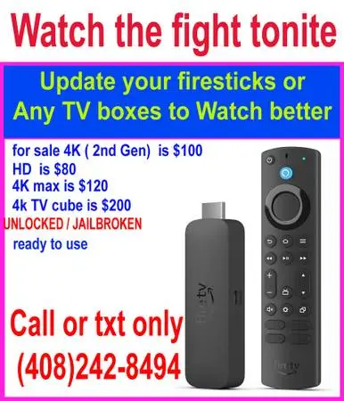 amazon fire stick 4 k is $1004 k max is $120 / firestick HD is $80 / fire tv cube is $199 update your stick is $50 / update setup super box formuler z 11 pro max is $200 superbox is from $250 s 6 max ultra superbox 299 , supreme is $399 pick up or ship availablecontact us if you want to ship / mail to you 1 year warranty text or call 408-242-8494 no email please